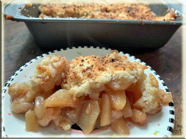 Delicious with ice cream. I will make this again, but I won’t make the graham cracker crust. I didn’t really see what the difference was when I had some with and without the crust. The apple filling is delicious, and full of caramel flavor – you will want a cookie sheet under this as it bubbled over. The topping is crispy and perfect.