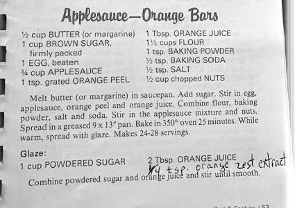 Wow! Yes,I will make again. Remember the apple blueberry bread I shared a week ago? From the same book came this recipe. This reminds me of those orange rolls you buy at the grocery store in a tube but not as sweet. The house smells like citrus. I poked holes in the cake so that the glaze would soak in more and the cake gulped away at the glaze. You want to definitely put the glaze on while the bars are hot because the glaze starts turning more solid quickly (like the ones from the grocery) I added a quarter tsp of orange zest oil which I bought from the King Arthur site and it works. I might add a quarter tsp of the oil to the bar batter next time. Not sure on that, due to this being perfect as is.