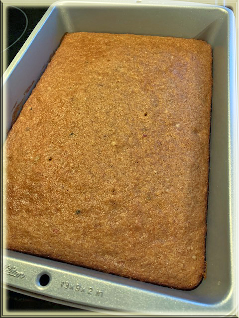 Bake 50-60 minutes or until toothpick inserted in center comes out clean. (Here in Indiana, 50 minutes was enough time) Cool 1 hour on a wire rack. Refrigerate 3 hours or overnight. Remove from refrigerator 15 minutes before serving. Cut into bars. If desired, serve with whipped topping.
