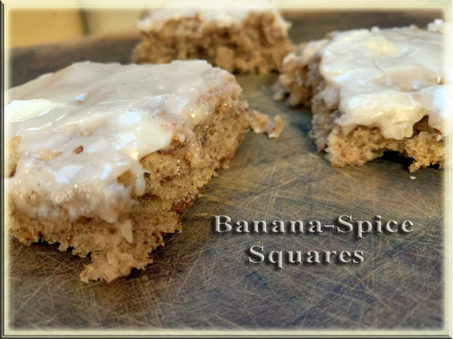 22 minutes worked for me here in Indiana. To take these bars over the top in banana flavor, I added banana flavoring. This was very easy and quick to create this morning. The spices in this recipe definitely make this a fall treat.