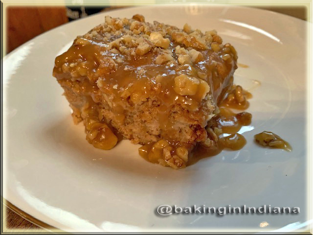 This is very moist, I will make this again and I’ll replace the cup of oil with applesauce. I will also try walnuts instead of pecans, and I’ll sprinkle some on top (just because I have an abundance of walnuts). This is delicious and I think it will be even better when it is cold.