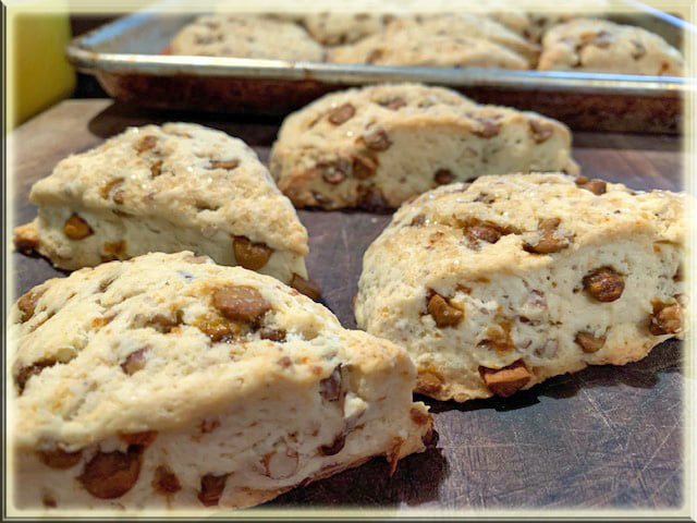 My tip is to make sure you measure them when flattening them in to a circle – I keep a plastic ruler in a kitchen drawer – I just pull it out and lay it over the disk to be sure I have right measurements – this has insured even baking for me (meaning, with scones, if they are not same thickness, you will have uneven baking on some)