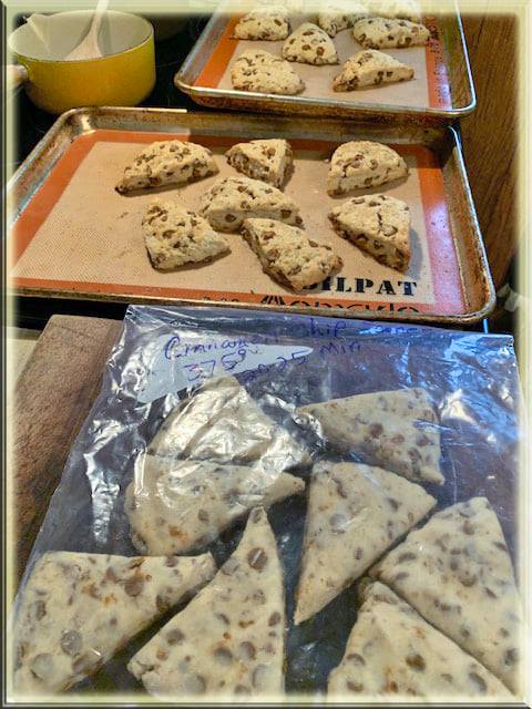 I divided the dough in to 3 balls as the recipe stated. After I scored each one in to triangles, I froze half of the triangles for later baking. (I share that ziploc freezer bag idea in one of the photos)
