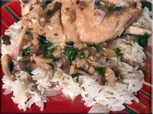Now my photos do not look appealing compared to theirs, but that is their job to market the recipe and to make you almost smell it from the page. I share my photos to show proof that I did make this. It is delicious! This is a different flavor to the chicken for us, and we enjoyed the change in our everyday go-to chicken recipes. My husband had the Jasmine rice with this dish, and I had cauliflower rice as I watch carbs.