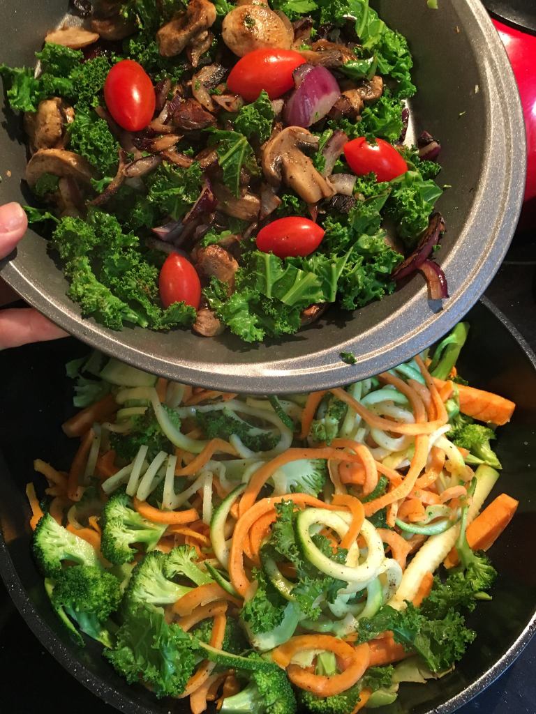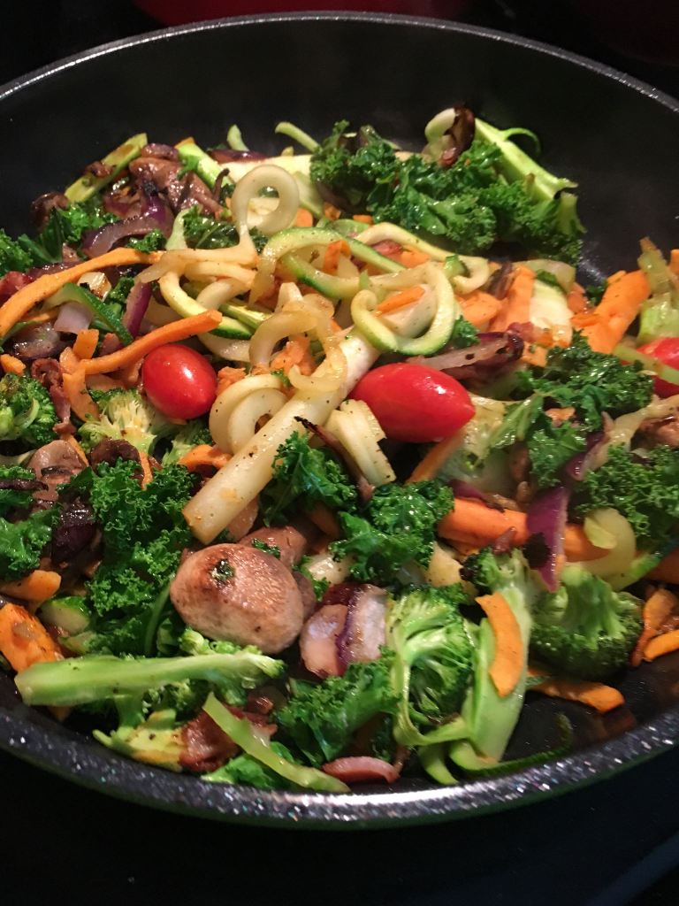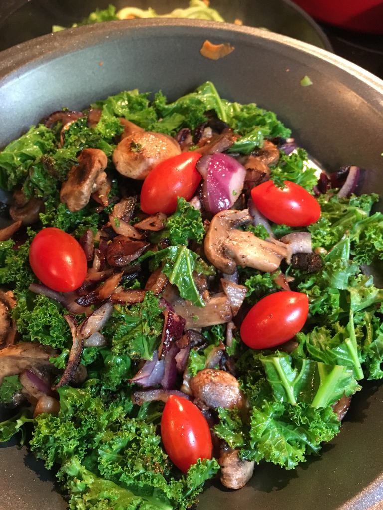 I added a side salad; cabbage/kale dish and a celery stick with sugar free peanut butter. What a pleasant meal.
