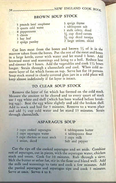 On the menu for St Patty’s Day was Asparagus Soup. As you know, I enjoy old cookbooks. When I found this recipe in The United States Regional Cook Book, and I had asparagus, I decided to give it a go.