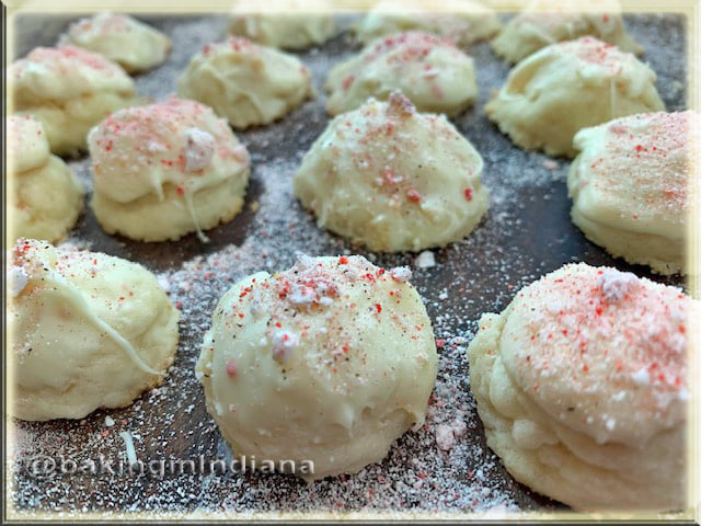 These melt in your mouth. Make sure you cream the butter well with the confectioners’ sugar or the cookies will melt. I put the dough in the fridge between baking batches and I believe that helped a lot; if the butter is too soft, the cookies will melt.
