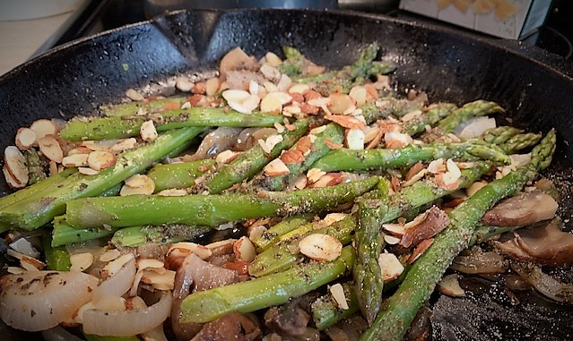 I had to do something with the Asparagus, because we got tired of it this past weekend after I made a large batch to go with our campfire foods. Jim did not want heavy cream in it, so I found this recipe on this blog called, “onceuponachef“