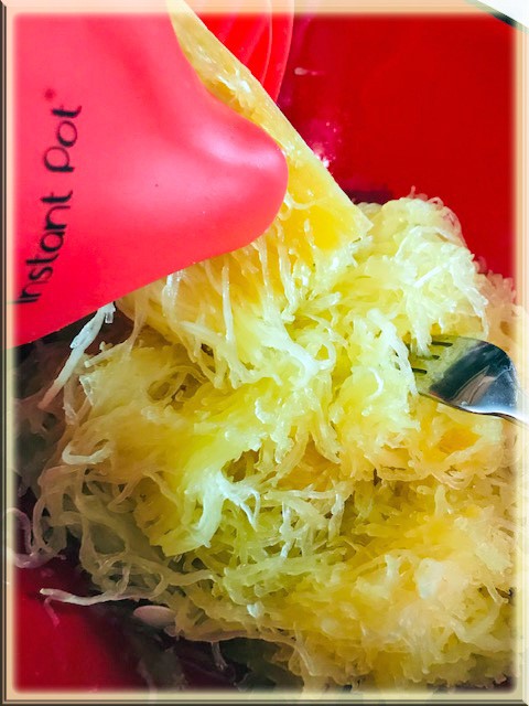 The steam function on the IP is perfect for Spaghetti Squash. There was no waste! The strands just fell out of the cups. I used a fork to pull them out.