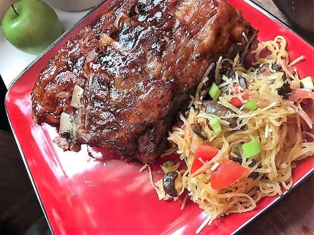 Those little red mitts that come with the IP? Hand savers! I use these when scraping out the spaghetti squash as it is super hot and soft; it falls apart easily so you end up burning your hands (when you’re in a hurry)