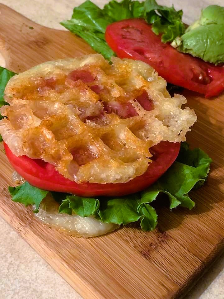 Chaffel BLT; I use a mini waffle iron as I like to keep the cheese low on my diet. I have made the 1/2 cup of cheese and 1 egg ones also, and they are delicious.