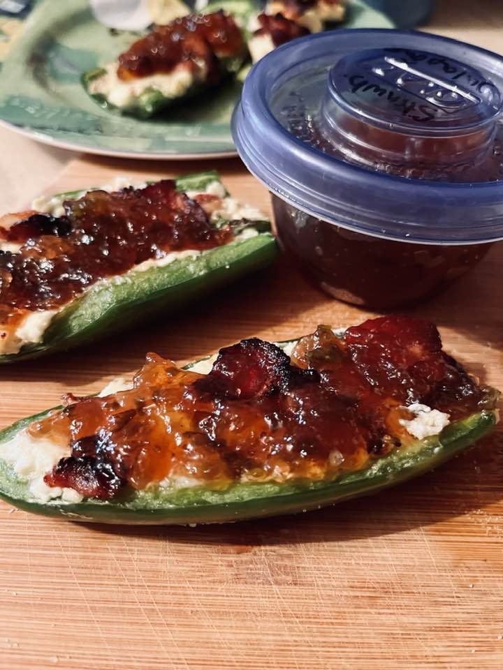 Jalapeños with cream cheese/herb/bacon blend.