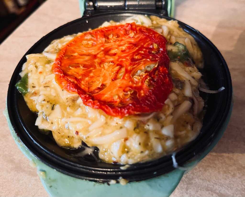 I have a dehydrator, and the tomatoes are fun to dehydrate I added one to each chaffle batter before cooking. Add avocado to chaffle when ready to eat, with a bit of bacon.