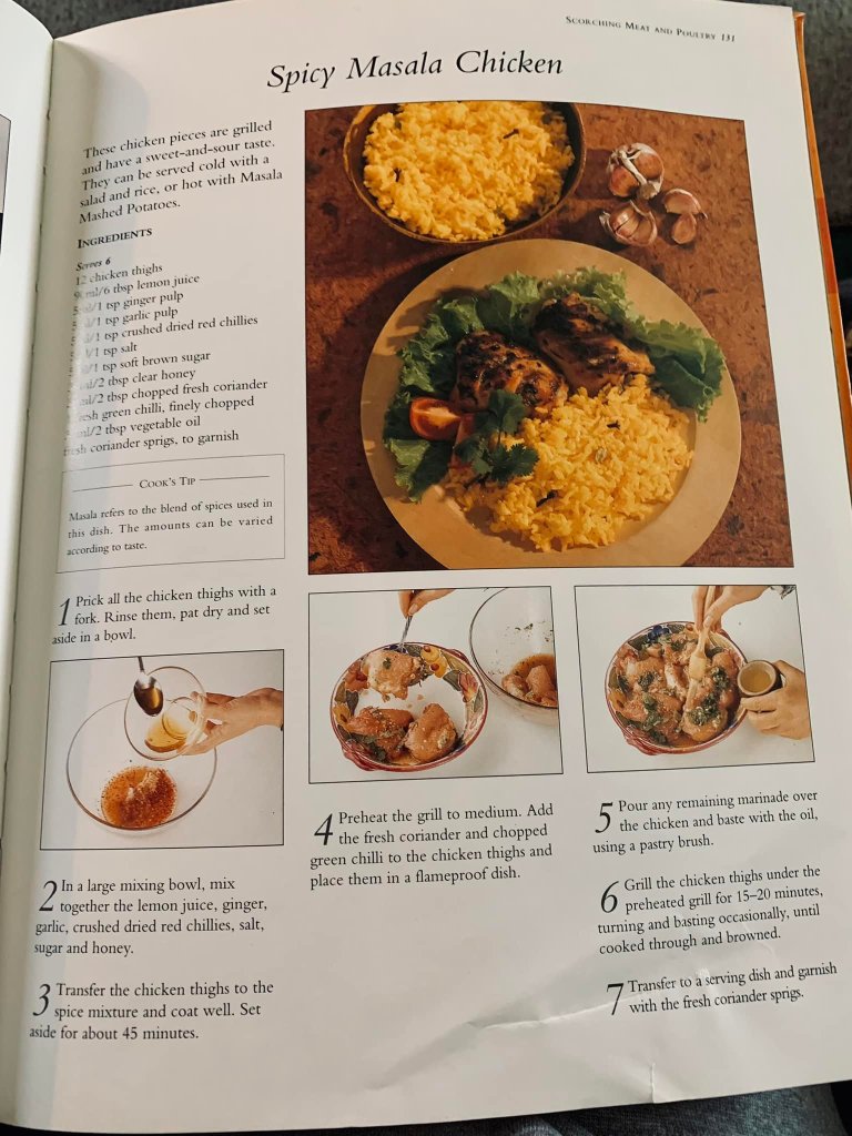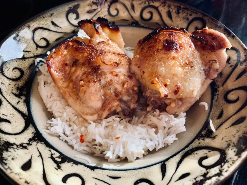 Now my photos do not look appealing compared to theirs, but that is their job to market the recipe and to make you almost smell it from the page. I share my photos to show proof that I did make this. It is delicious! This is a different flavor to the chicken for us, and we enjoyed the change in our everyday go-to chicken recipes. My husband had the Jasmine rice with this dish, and I had cauliflower rice as I watch carbs.