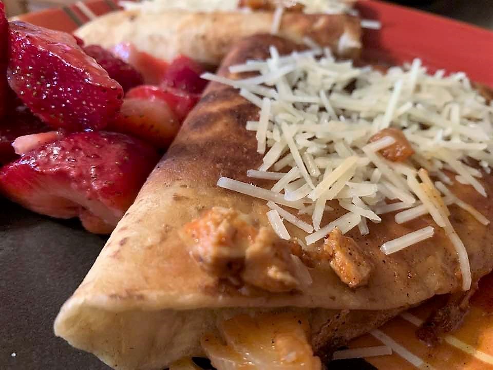 I added parmesan cheese to the top instead of salsa; I put the salsa in a small dish on same plate for scooping on to the tortillas. The salsa I used had heat so I didn’t want to add more; let that be up to each personal taste. I also added cooked mushrooms and onions to the salsa mixture.