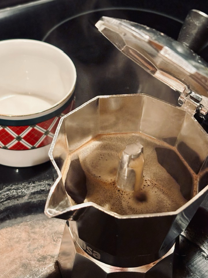 In the photos, you’ll see the sweetener I prefer. But this coffee is delicious without a sweetener. I just like the holiday flavors throughout the year.